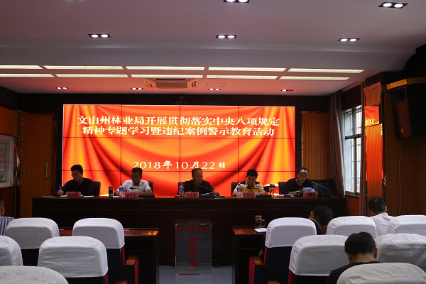 (记者 钱丙申 通讯员 钟 鑫)2018年10月22日下午,文山州林业局开展贯彻落实中央八项规定精神专题学习暨违纪案例警示教育活动,全局91人干部职工参加警示教育活动。
