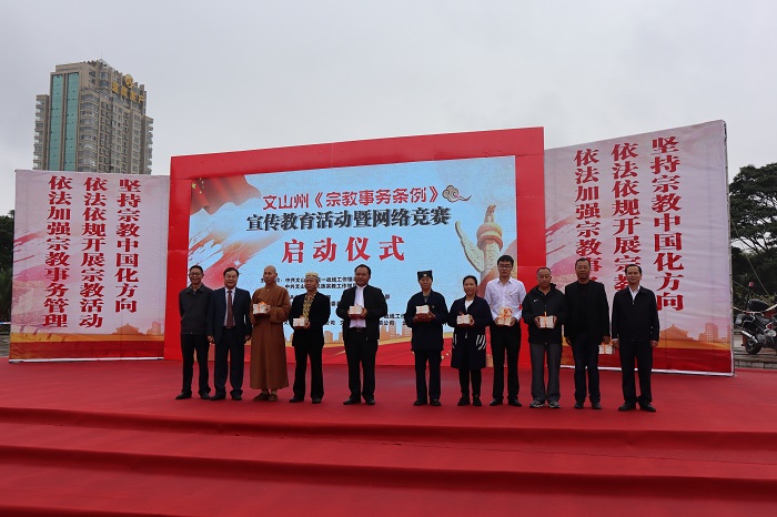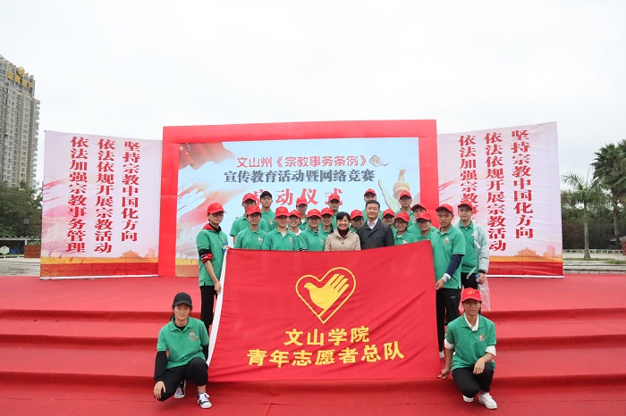 为深入学习贯彻国务院2018年 2月1日新修订并实施的《宗教事务条例》,充分调动文山学院广大师生尊法、学法、守法、用法的积极性,2018年10月27日上午,文山州《宗教事务条例》宣传教育活动暨网络知识竞赛启动仪式在七花广场举行,文山学院540余名师生积极参加了此项活动。