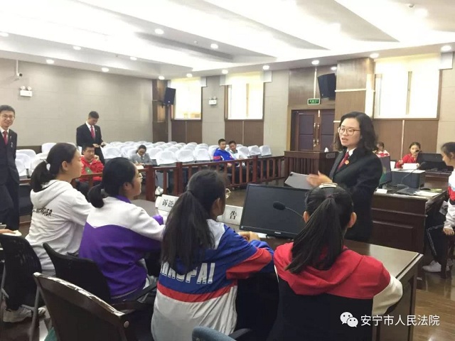 (记者 钱丙申)11月23日,安宁市人民法院举行公众开放日活动。中午1点,安宁中学初中二年级30名师生利用课余时间走进安宁市人民法院,零距离了解法院相关工作。