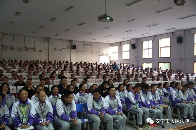 共青团安宁市委副书记胡艳、安宁中学太平学校德育处主任高玫参加了安宁中学太平学校模拟法庭活动,安宁中学太平学校初一、初二年级400余名师生旁听了模拟法庭庭审。