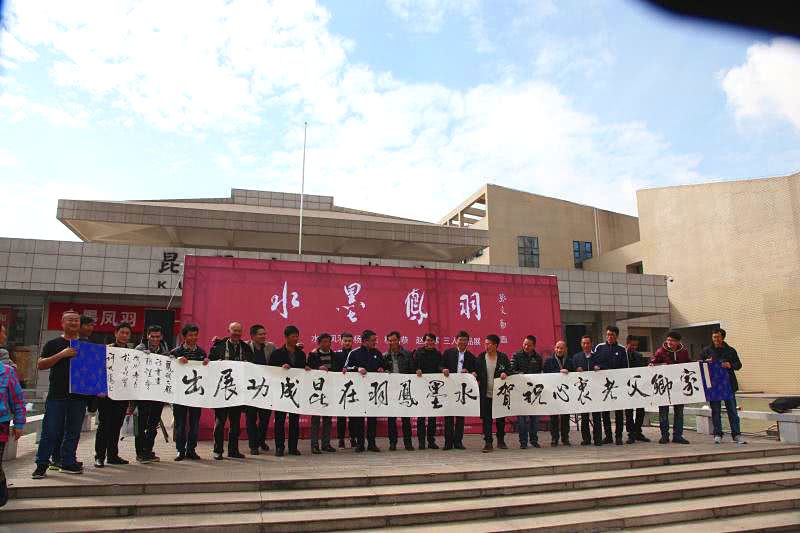 (记者 钱丙申 摄影报道)2018年12月17日上午,“水墨凤羽”三人作品展在昆明市博物馆隆重开幕,出生于大理洱源凤羽的杨跃乐、杨绍恭、赵寒分别用他们手中笔毫,以不同的心路历程、别样的审美取向呈现家乡凤羽青山围抱、绿野平畴、白墙青瓦、村庄棋布的美好家园,传承民风淳朴、耕读传家、人文荟萃的“文墨之乡”。 凤羽乡贤、云南学界泰斗张文勋先生在耄耋之年欣然为三位同乡才俊作品展泼墨题字并作序,“诲尔谆谆,听我藐藐”,张文勋先生的故土情怀、殷切希望和谆谆教诲挥洒笔端,鼓励和鞭策三位水墨路上的跋涉者。