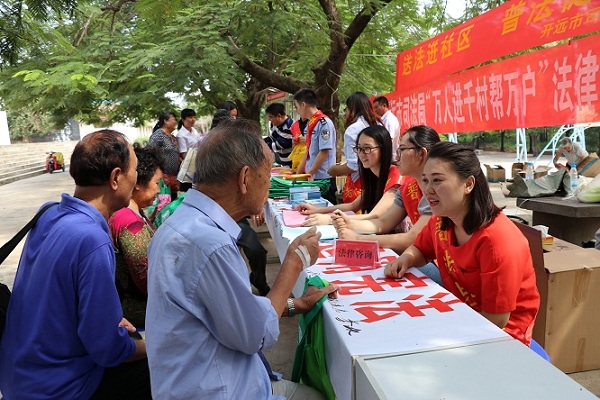 图为市司法局普法志愿者深入农村开展法治宣传活动