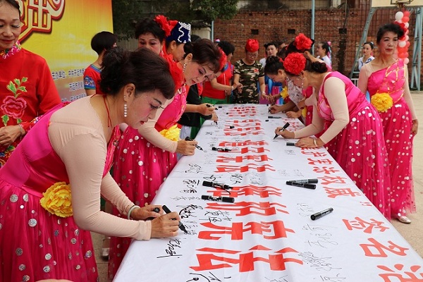 图为社区群众参加“弘扬法治精神 维护宪法权威”签名活动