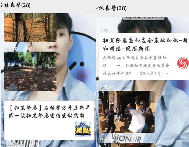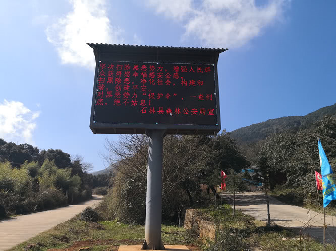 石林县森林公安局通过圭山森林公园电子显示屏滚动播放“扫黑除恶”宣传标语;民警、辅警积极在微信群里发送各种“扫黑除恶”宣传内容,加大宣传力度,提升知晓率。