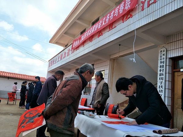 (记者 钱丙申 通讯员 陶汝亚)“无联不成春,有联春更浓”,春节作为中国最盛大、最重要的传统节日,贴春联的习俗一直延续至今。为营造欢乐祥和喜庆的节日气氛,丰富群众文化生活,1月26日,曲靖市书法家协会、宣威市书法家协会联合深入宣威市西宁街道列租村委会和马街村委会开展“义务写春联 祝福送万家”为主题的志愿服务活动,免费开展写春联活动,为大家送上最诚挚的新春祝福。
