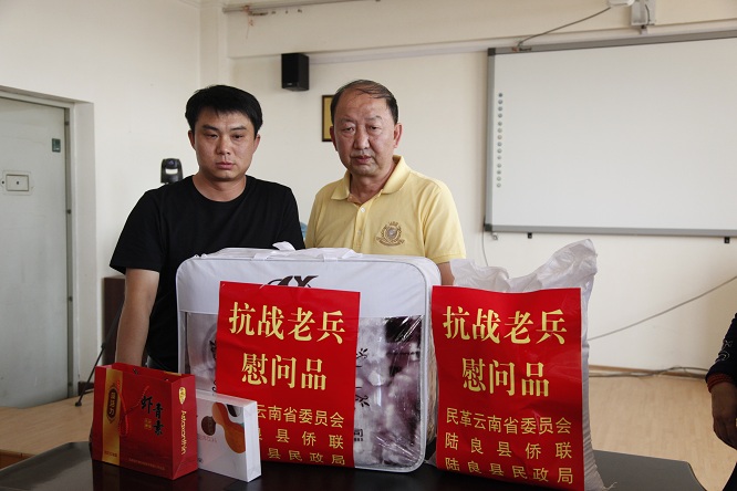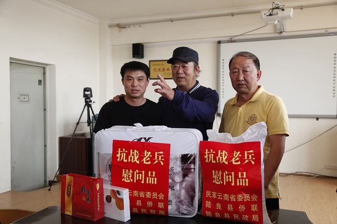 陆良县老龄委办公室执行发放的“抗战老兵大礼包”,是由深圳龙越慈善、360公司、博时基金捐助制作的,每个大礼包装有奖章、奖牌、羊绒被、衣物、拐杖、证书等10件礼品(每件大礼包价值近2000元),县内46位抗战老兵每位领到了1个大礼包。对全县健在的抗战老兵发放大礼包,充分体现了党和各级政府以及社会爱心人士对抗战老前辈们的关心和厚爱,对维护社会稳定、维护国家主权和民族尊严、弘扬抗战精神,促进社会文明进步,实现中华民族伟大复兴的中国梦,均具有十分重要的意义。
