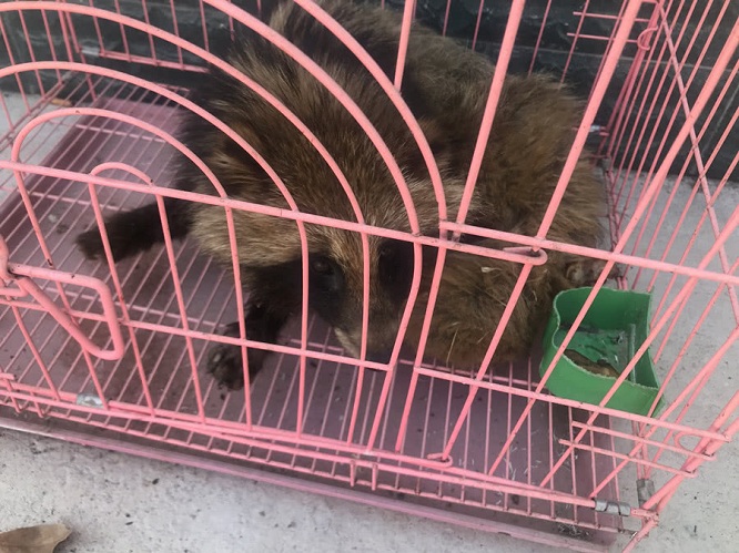 接报后,民警立即赶往石林镇小沙邑村,到达现场后,看见一只体色为黄褐棕、吻部黑色、四肢短呈黑色、尾巴粗短疑是小熊的动物关在笼子里。经群众反映,该小熊是4月12日傍晚19时许跑到她家的,来后就被他们捉住关在笼子里,小熊因脖子受了伤,喂它肉片它也不肯吃。经民警初步查看,该“小熊”实为“三有”野生保护动物“貉”。