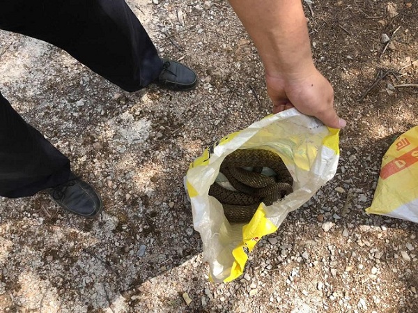 云南昆明晋宁自然资源公安救助两条黑眉锦蛇
