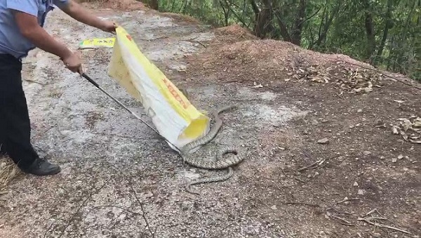 接报后,晋宁区自然资源公安局值班民警立即赶往报警地点。在报警人的指引下,民警在昆阳磷肥厂平顶山生活区一住宅楼下的水沟里找到了报警人所说的蛇并其捕获。后民警对报警地点周边进行安全排患后将蛇带离。
