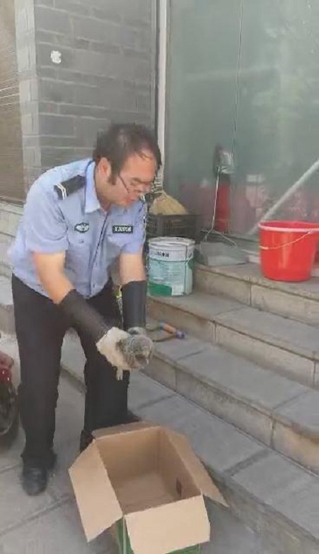 5月9日09时09分,晋宁区自然资源公安局接昆明市自然资源公安局接处警指挥中心指令称:“有群众报警在晋城镇和风香舍小区发现一只鹰,要求晋宁区自然资源公安局前往处置”。