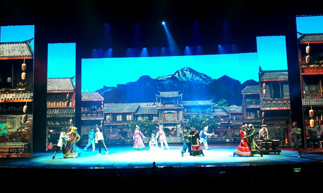 “东巴秘境”国际康养度假区作为丽江市文旅产业项目之一,得到了云南省市党委政府的高度关注和认可,被誉为全面展示“丽江旅游转型升级成就”的代表性项目。在现有成果的基础上,为弘扬丽江纳西族独有的东巴文化,不断丰富项目业态, 裸美乐公司斥重资在项目内建设演艺剧场,上演“丽江东巴玄幻史诗剧—《雪山神话》”。剧目区别于传统剧目,既具有传统之美又有现代之力,在充分展示历史性、人文性的同时,兼顾艺术性与潮流性,是一台充满人文艺术性的现代新型舞台剧,成为丽江文化旅游市场独有的艺术作品,为丽江的演艺市场注入新活力,助力丽江摆脱传统观光旅游模式,把丽江打造成世界级旅游目的地。