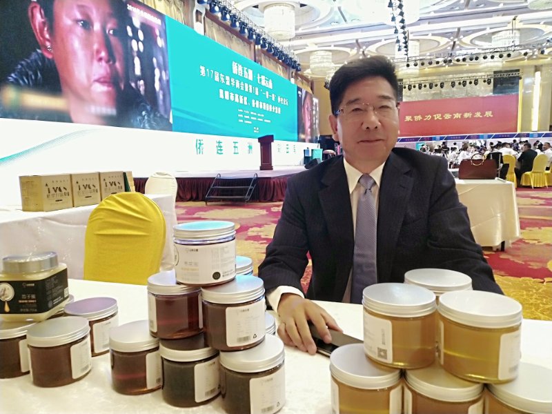和教授接着介绍好几款产品,枣花蜜是在滇缅边境有着从未受过污染的纯净之地,酿造枣花蜜。