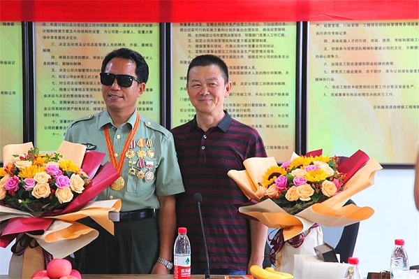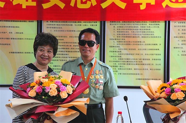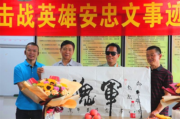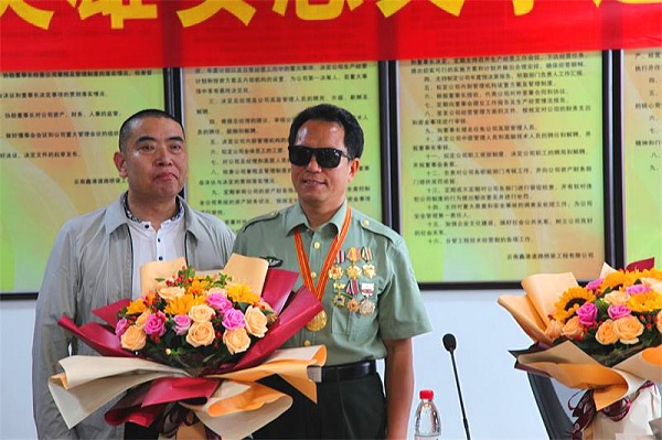 (记者 钱丙申摄影报道)8月3日早上十奌半,在东风路汇都国际二十六楼,鑫港道路桥梁有限公司的会议厅里,灯火辉煌,大幅横标上红底黄字上深深凸现着几个大字。欢迊自卫反击战英雄安忠文事迹报告会!鲜花布满讲话台,安忠文英雄走进会场。美女送上了鲜花全场鼓掌,受到热烈欢迊。此次是由,中国中非总商会云南分会执行会長,云南绿色有机食品产业协会监事长,云南民革经济总支副主委李忠良,组织民革老党员,向英雄学习!争做时代的英雄。今天到会的有民革企业家有王兼,谢敏,于秋丽,孙灿,李军,胡涛,岳全林,杨文彪',辛苑,韩献锋,李晓苹等党员同志。