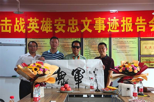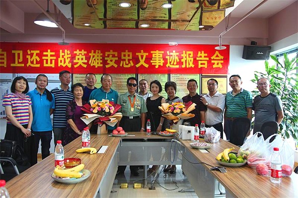 报告会中安忠文英雄说到,报家卫国流血牺牲是每个当兵人誓言,牺牲是无私的无畏的,是我们的责任,是敢于担当的责任,为人民,为祖国!献我们生命是战士的骄傲。他讲述了一个个生动的战争场景。让在座的民革企业家们感动,有的同志还感动流泪,当她妻子说我做她的妻子光荣!我骄傲!在苦在累我不怕,英雄鼓励着我!会场一片热烈的掌声!大家非和英雄合影留念!党员同志们说今天上了一场非常有教育意义课!
