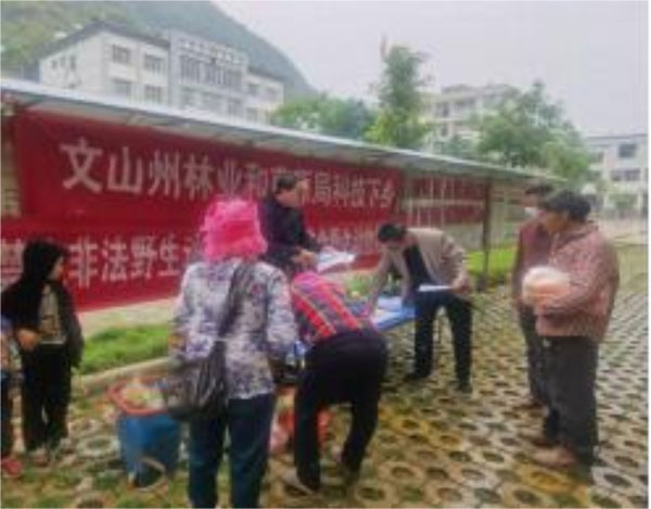 4 月 30 日,为宣传民族团结政策,积极营造创建民族团结 进步示范浓厚文化氛围, 文山州林业和草原局组织 科技宣传服务队前往砚山 县八嘎乡开展送科技下乡 活动。宣传主要以林业实 用技术、扶贫政策、林草 政策法规、民族团结、扫 黑除恶、全面禁止非法野生动物交易革除滥食野生动物陋习等 — 2 — 主题,结合林草行业扶贫工作实际,围绕推广先进实用、简便 易行的林草种植技术,运用通俗易懂的语言为群众进行了讲解, 共计发放宣传资料 300 余份。 通过宣传,进一步巩固和加深各民族人民血肉相连、唇齿 相依、情同手足的民族感 情,把民族团结进步示范 工作不断推向深入。科技 宣传服务队还勉励群众 克服当前疫情影响,增强 信心,相信科学,学习运 用先进林草种植技术,争 做科技致富带头人。