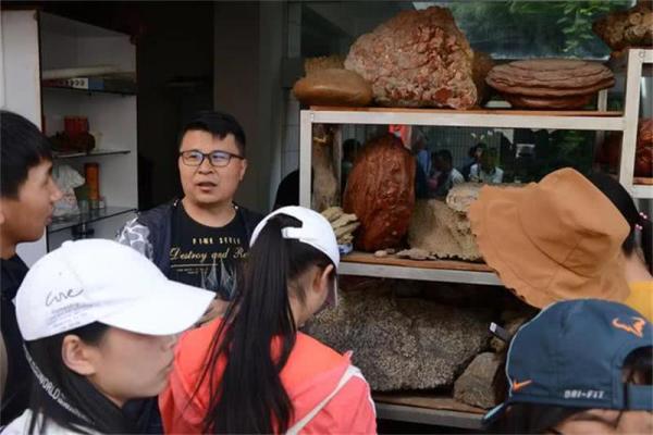 2019年6月2日上午,曲靖师范学院城市学院副院长于龙博士,吴永涛博士一行带领地理科学专业68名学生开展综合自然地理学习互动。走进赵英福先生的私人三层小院才发现,房间内、院落中,到处都摆放着大量的化石、奇石,其中不乏众多的精品,赵先生面对着自己心爱的石头,如数家珍的为师生们讲解各种化石奇石的名称、形成原因及年代等知识。陆良古生物化石科普教育基地自成立以来,已多次接待国内、国外各类组织及个人的参观、指导、交流,大家对馆藏品种一致赞不绝口。
