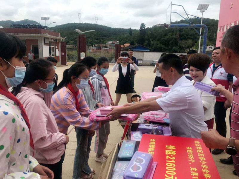 近日,云南醉临风酒业有限公司携手昆明市五华区红十字会,向五华区瓦恭小学捐赠了一批价值近3万元的书包、文具用品。据了解,瓦恭小学是昆明市五华区边远山区小学,四面环山,风景优美,颇富特色,但交通不便。现在校学生近200名(少数民族学生占到50%),分别来自12个村小组,多为留守儿童,近90%的学生为住校生。