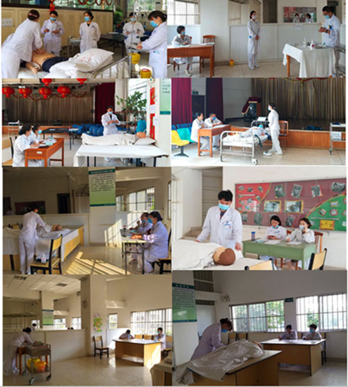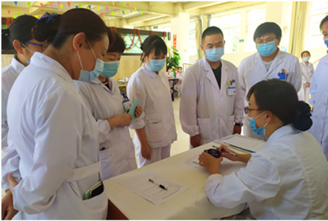 本次操作考核在医院副院长陈志祥总督导、护理部主任冒才英总协调、副主任马润娟进行具体工作安排等协调下顺利开展,其中监考教师均是副高级职称搭配中级职称组成各项技术考核小组,考核项目分别是生命体征监测技术、密闭式静脉输液技术、皮内注射技术、皮下注射技术、肌肉注射技术、真空负压静脉采血技术、口鼻吸痰法操作、使用约束带、约束衣操作等十项临床常用护理技能。