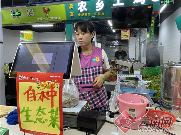 营业执照清晰可见,货品称重时电子屏幕即刻显示品名、单价及计费、大屏滚动展示当日实时菜价、消费者扫码支付、消费过程全程可追溯……在菜市场买菜,像逛超市一样,昆明首家“智慧菜场”云鲜生生鲜集市日前正式落地。