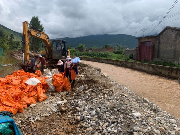 县城所在地茈碧湖镇全民总动员,县应急、水务等部门积极参与,共投入57人、挖掘机3台,快速堵住了凤羽河分河沟3处决口,加高河堤780米,保住了文强一组村民安全。