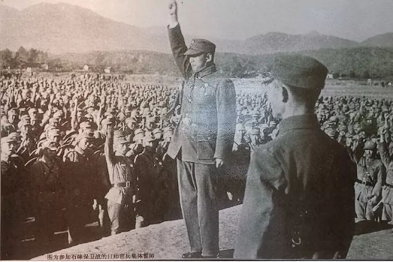 五十师师长潘裕昆将军站在缴获的日军坦克上对官兵发动员令 地点:缅甸西保