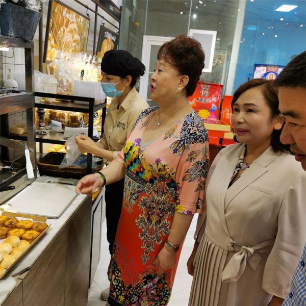 陈静董事長代表企业表示感谢,中非商会一行领导来桂美轩考察调研。在商店上看到小时味道重油蛋糕,各种精品花样糕点月饼。吕会長并品赏美味的重油蛋糕,高兴的说又回到小时候的感觉了。会長问到企业疫情企业情况,陈静董事長说:疫情虽无情,但有党和政府关怀,全体员工对社会实施了爱心捐赠计20多万,我们一定克服困难,完成我们生产任务,保质,保量,保生产。