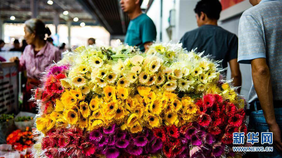 下午4点多,云南昆明斗南花卉市场人头攒动。
