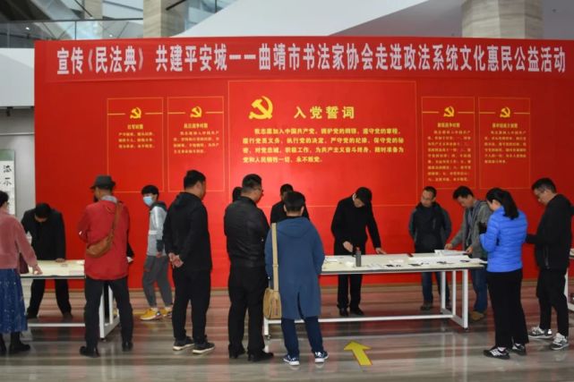 活动现场,还举办了“宣传《民法典》 共建平安城”——曲靖市书法家协会走进政法系统文化惠民活动。书法家们凝神聚气、挥毫泼墨,为现场参观者写下一幅幅墨香四溢的书法作品,将一缕缕温暖传递到辛勤战斗在平安建设一线的政法干警手中。