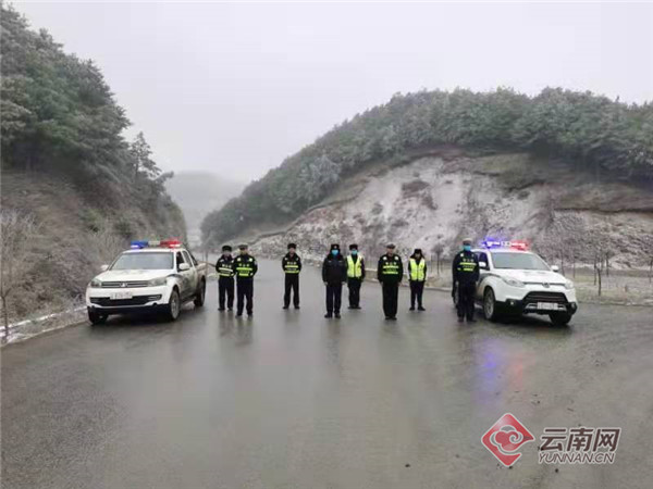 云南永善部分道路现冰凌 交警设置5个临时执勤点抗冰保畅