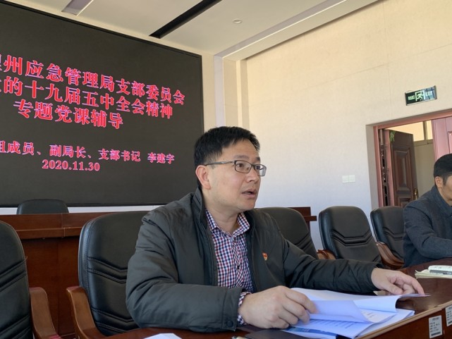 11月30日上午,大理州应急管理局党支部召开党员大会,开展学习党的十九届五中全会精神专题党课。党课由该局党组成员、副局长、党支部书记李建宇主讲。