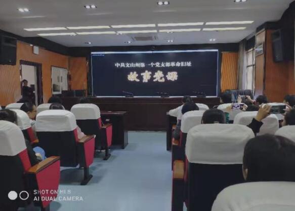 首先,开展“中共 文山州第一个党支部 革命旧址故事党课”,通过观看视频党课,让广大女职工了解了中共云南第一任省委书记王德三、云南第一个女共产党员吴澄 以及李国栋、严英武等共产党员在洒嘎竜开展艰苦卓绝革命斗 争的经历,警醒我们时刻不忘党史,为大家带来奋进的力量。 课后,30 多名女职工合唱《党啊,亲爱的妈妈!》,向建党 100 周年深情献礼,当耳熟能详的歌声响起时,现场所有人起立共 同演唱,唱出大家对党和祖国的热爱。