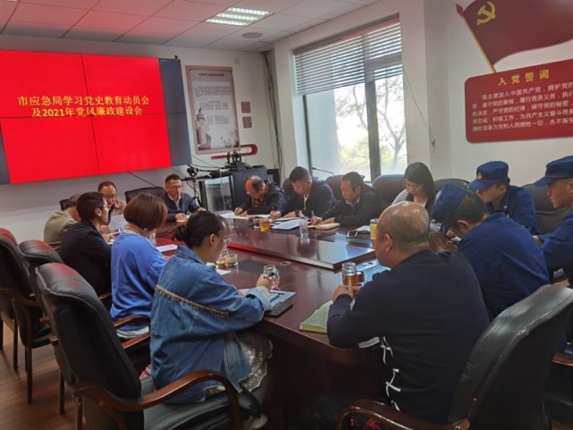4月2日上午,大理市应急管理局党委召开党史学习教育动员会暨2021年党风廉政建设会,该局党委书记陈学劲同志主持会议并讲话,纪检组组长李勋儒、该局党委委员及全体干部职工、市地方综合应急大队全体党员参加会议。