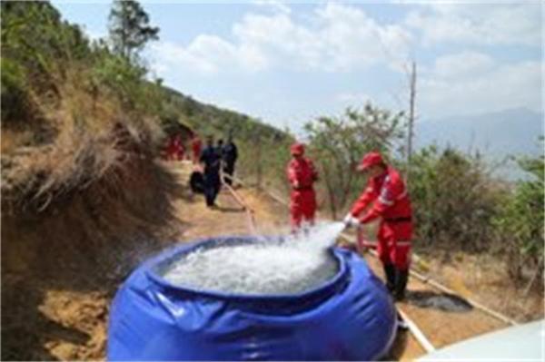 此次演练出动4车27人,使用了38Kw水泵1台、10Kw水泵1台、10.8Kw浮艇泵1台,水囊2套、消防水管600余米,消防水炮1台。地方应急大队使用浮艇泵从水库提水至1级水囊,中运危化救援队负责中段输水至2级水囊,之后联合启动大型水泵开展水枪、水炮喷水灭火演练作业。本次演练从水库向山坡2组提水扬程约60米,水管输水长度600米。