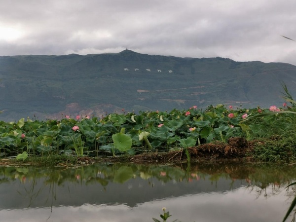 每次提到龙海乡,都会情不自禁想到山上的几个字。站在山脚,抬眼就能看到“共产党万岁”五个醒目的大字。据说,抗战取得胜利,人民获得解放后,陆良人民感念党恩,就地取材,用巨石雕刻堆砌了一些比如“毛主席万岁”、“共产党万岁”、“改造中国,愚公移山”等标语,纪念那段硝烟弥漫的烽火岁月。