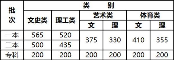 体育文本科410分、专科200分,体育理本科355分、专科200分。