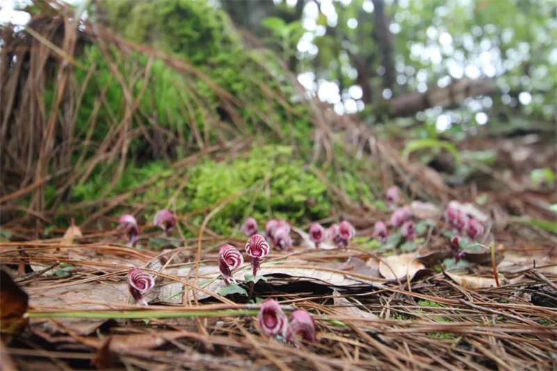 据蒋宏介绍,目前已知中国兰科植物有196属1680种,其中云南省多达159属1240种,占全国种类的73.8%。据《龙陵小黑山省级自然保护区生物多样性及评价报告》(国家林业和草原局昆明勘察设计院,2020),目前仅龙陵小黑山保护区5800多公顷的狭小区域就分布有野生兰科植物56属161种。而作为兰科铠兰属植物的大理铠兰分布范围十分狭窄、种群数量也十分稀少,因此它已被列入2013年《中国生物多样性红色名录—高等植物卷》——濒危(EN)物种。