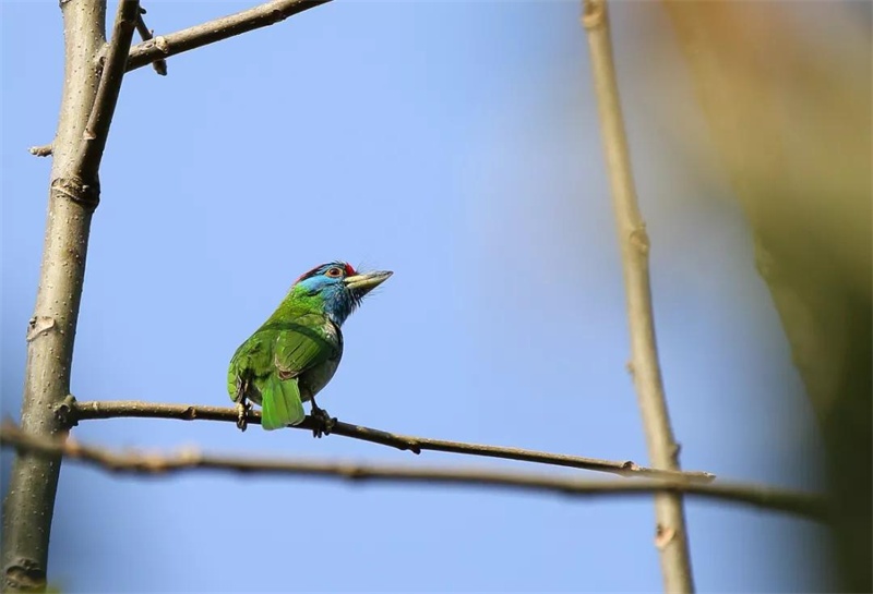蓝喉拟啄木鸟:宁愿身上绿也要“头顶红”(杨吉强 摄)