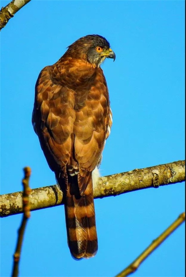 凤头鹰属国家二级重点保护野生动物,为中等体型猛禽。机警的隐藏高手,常躲藏在树叶中,发现猎物时突然出击。在小黑山保护区及周边区域多有分布,常单只活动。
