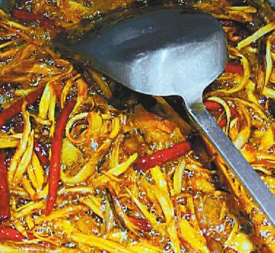 在峨山,人们对鸡枞的烹调可以极简到只需炒、炸、煮,佐以煳辣椒和大蒜就可以成就佳肴,也可以繁杂到以鸡枞为主料,配以其他辅料创新菜品,但唯有鸡枞油在留住鸡枞鲜美味道的同时会让人想到家的味道。