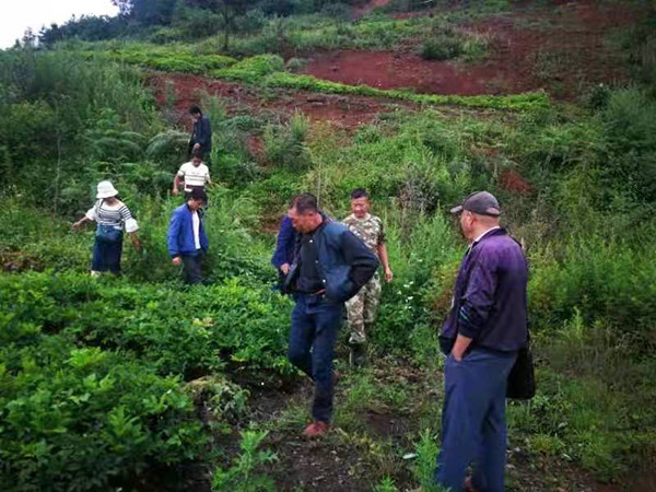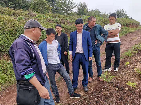 镇宝驻村工作队经过实地走访调研,发现传统的核桃、甘蔗产业在当地后劲乏力,绝大部分家庭经济靠打工支撑,而受疫情影响和多种因素制约,多数家庭打工也是举步维艰。另一方面,却不同程度地存在闲人闲地,劳动力弱或丧失劳动力人家的土地大幅贬值,出现“白给”也不种的现象。如何把闲人调动起来,闲地盘活起来?大家究竟想种什么?大家商量以后,把目标圈定在魔芋种植上,可让大家犯愁的是不懂技术,不了解“外面”的情况和产业的未来前景。工作队多方打听,主动对接,与镇宝村5位和邻近正平村的1位有意向种植魔芋的村民,来到隆阳区水寨乡太元村的老兵魔芋种苗基地,实地参观、考察和学习。