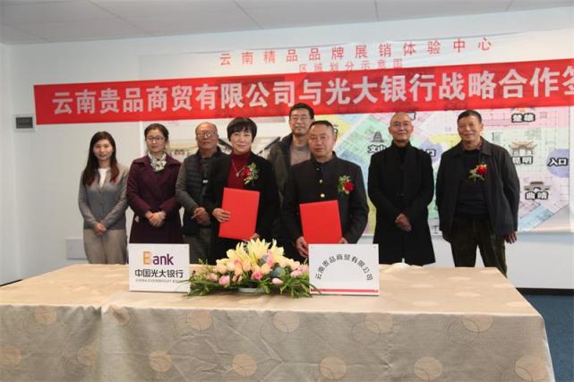 1997年中国光大银行昆明分行落地云南。分行始终秉承“以客户为中心,以市场为导向”的经营理念,积极服务于云南经济社会的发展。先后荣获了“云南省银行业支持地方经济贡献奖”、“云南省银行业最佳产品创新奖”、已发展成为云南金融行业中具有良好品牌形象的商业银行之一。我们一直致力于服务利于云南经济社会发展的企业。而云南贵品商贸有限公司正是这样一家企业!贵品商贸积极助力云南乡村振兴,打造云南正规、地道产品对外销售拓展的特色窗口,精心策划企业品牌市场推广计划,进行线上品牌和专卖商场同步同频推广,构建了完善的云南省精品品牌展销服务体系,推动云南品牌高质量发展。我相信,在不久的将来,一定会为云南省供给侧结构性改革、实体经济高质量发展做出贡献。