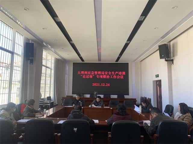 12月24日,大理州应急管理局召开安全生产培训“走过场”专项整治行动工作会议,该局分管领导、相关科室、安全培训机构、考试机构和考试点、生产经营单位有关负责人参加。