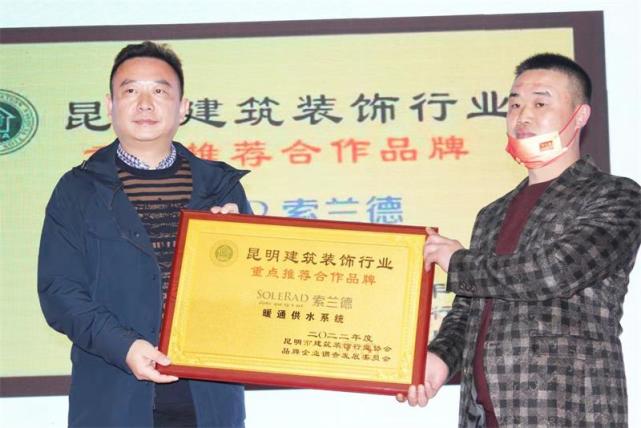 2021年12月28日下午,由云南双荣科技有限公司主办、昆明市建筑装饰材料行业协会、昆明市建筑装饰行业协会协办的"德国索兰德暖通供水系统2021年终答谢暨产品发布会"在昆明举行。昆明市建筑装饰行业协会会长郑斌、昆明市建筑装饰材料行业协会会长李江、昆明市重庆忠县商会会长秦联宗、昆明市江西瑞金商会会长赖芸、昆明市建筑行业协会易学规划中心主任何瑞明分别在会上发言。来自云南装建筑装饰材料行业的会员,鲁班装饰、全友装饰、博润装饰等公司,社会名流、商界精英、媒体记者200余人参加了会议。