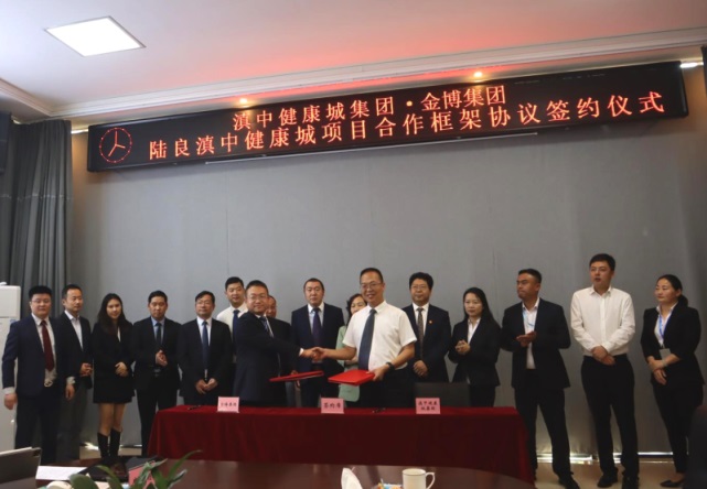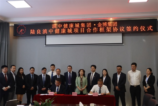 在双方集团公司领导层的见证下,曲靖金博集团董事长徐宏章与陆良滇中健康城集团集团公司总裁汪建良签订了项目合作框架协议,携手打造集医养结合、文旅休闲、城市服务三大功能于一体的健康之城。