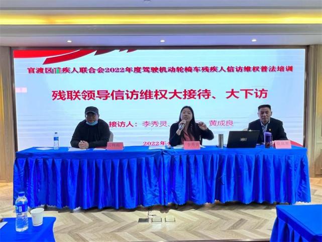 2022年4月21日,由官渡区残疾人联合会主办、官渡区寸草心助残服务中心承办的官渡区残疾人联合会2022年度驾驶机动轮椅车残疾人信访维权普法知识培训在官渡区维也纳酒店开训。