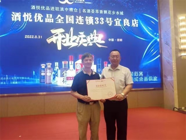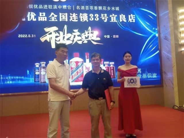 马辉酒业本着力图精进、开拓创新为寻求发展新思路,于2022年8月初马辉伉俪齐上酒悦优品总部考察并成功达成加入酒悦优品全国连锁项目宜良店的战略合作,与酒悦优品总部现场签署合作协议。项目的优质资源配置与模式的稳健使得马总极度兴奋,考察结束后马不停蹄的回到宜良进行选址落地工作:经过紧锣密鼓的赶工进行施工,一切都非常顺利地落成,从最初的空旷变成全新的酒类专卖连锁中心:一切以准备就绪,酒悦优品总部与宜良店共同向宜良的好友嘉宾发出诚挚的邀请,共同见证酒悦优品宜良店的开业盛况,同时也是马辉酒业成立30周年庆典,在这一双喜临门的欢喜时刻期待与嘉宾好友欢聚一堂,工饮佳酿细数情长... ...