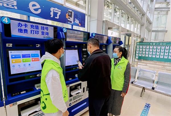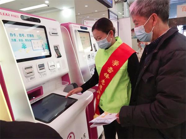 各医院不断简化老年人就医流程,持续优化老年友善服务。在医院门诊大厅,整齐摆放着自助机,志愿者在旁边耐心地协助老年患者操作机器,帮助他们顺利完成挂号、缴费、查看化验单等自助项目。
