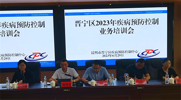 为推进晋宁区国家基本公共卫生服务项目工作高质量发展,6月29至30日,晋宁区卫健局召开了2023年国家基本公共卫生服务项目疾控业务培训会。区卫健局分管副局长朱云、局基层科相关人员、区疾控中心部分领导班子成员参加会议。疾控中心相关业务科室人员等10余人进行了现场授课,培训分昆阳、晋城两个批次进行。