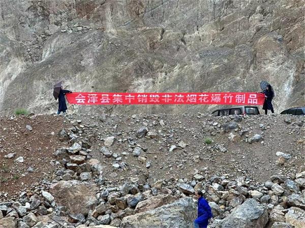 会泽县应急管理局联合多部门集中销毁911件非法烟花爆竹产品