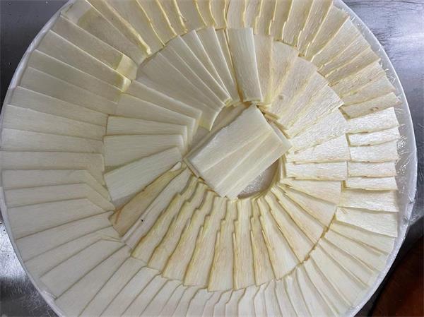 市林业局退休高级园林工程师说:“甜棕规模化连片栽培,最好是栽培三年以上苗龄的植株。株距是70厘米,行距是100厘米,这种栽培密度,一是叶片呈65度夹角斜上方生长,叶片相抵遮挡阳光对土壤的照射,减少水分蒸腾,耐旱的甜棕长得快。二是叶片遮挡了阳光水分,树空杂草不易生长,减少除草劳力。三至四年可以砍头时,砍二留一出售甜棕头,可以回收前期投入成本,剩下的一株2米的株行距,恰好是收剥棕包米的科学间距。”